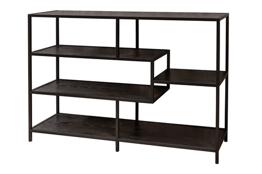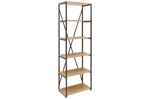 Dieses elegante Regal in Wildeiche Optik verbindet Funktionalität mit modernem Design. Die naturfarbenen Regalböden und das robuste schwarze Me...