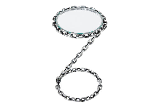 Dieser Beistelltisch wird in Handarbeit gefertigt, was jedes Stück zu einem Unikat macht. Der silberne Rahmen und die transparente Glasplatte v...