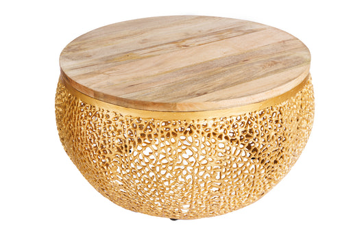 Couchtisch Petal 80cm Mango Gold Der Couchtisch Petal 80cm kombiniert eine Tischplatte aus naturbelassenem Mangoho...