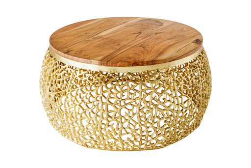 Couchtisch Petal 75cm gold Akazie Der Couchtisch Petal mit einer Tischplatte aus Akazienholz und einem filigranen ...