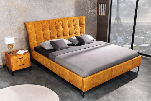 Bett Beschreibung Stilvolles Bett in Senfgelb Dieses elegante Bett in senfgelbem Samt bringt sowohl Komfor...