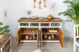 Das Sideboard Grand Combin in White Wash Optik kombiniert die Schönheit von Mango- und recyceltem Holz für einen einzigartigen, farbenfrohen Look. Es ist ideal für alle, die sich eine stilvolle und nachhaltige Aufbewahrungslösung wünschen.
