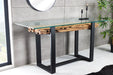 Dieser stilvolle Schreibtisch kombiniert nachhaltiges, recyceltes Teakholz mit einer edlen Glasplatte und einem schwarzen Eisenrahmen. Die massive Bauweise und das moderne Design machen ihn zum funktionalen Highlight in jedem Raum.